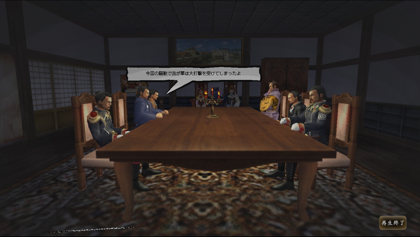 物語のムービーでは,皇国首脳が,皇帝陛下に対して,エゲレスの最新技術を手に入れて新政府を一気にたたきつぶすというステキな意見を具申していました。