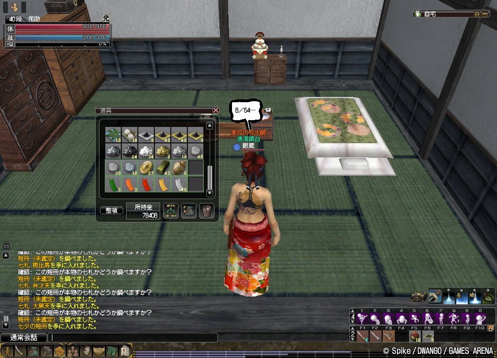 どのmobが短冊を落とすかよく分からないのですが,とりあえず,口入を兼ねて,白州松原(しらすまつばら)の「潮ネズミ」と「原守り鹿」を狩りまくりました。
