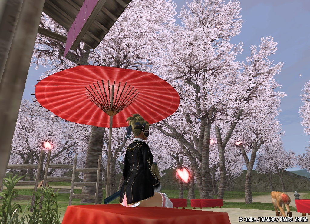 桜が咲いているのは御桜門だけですが,美玖の都全域で,桜吹雪が舞っています。