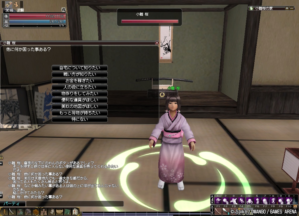 懐かしいついでに,初めて桜さんの話をちゃんと聞いてみた(拙者,説明書は読まないタイプでござる!)ら,長屋の大家からもらえる「美玖の地図」は,しばしば道端に棄てられてしまうので,桜さんがそれを拾って,地図を必要とする武芸者に交付しているらしい。