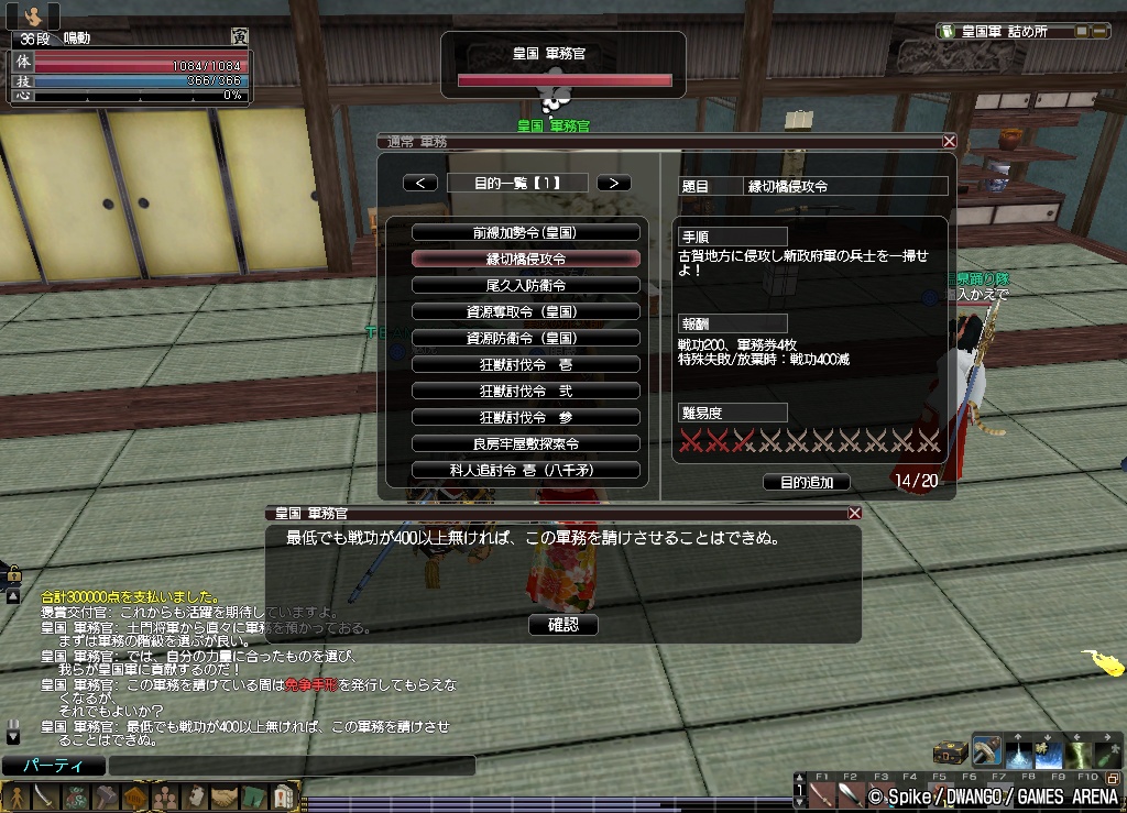筆頭隊士になるには40段にならないといけないので,段を上げる作業に取り掛からねばなりませんが,今のペースで行くと1年はかかるよ!