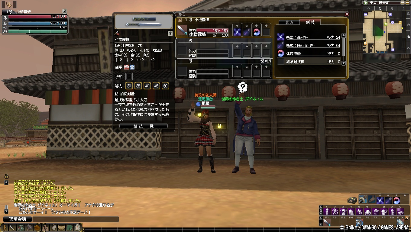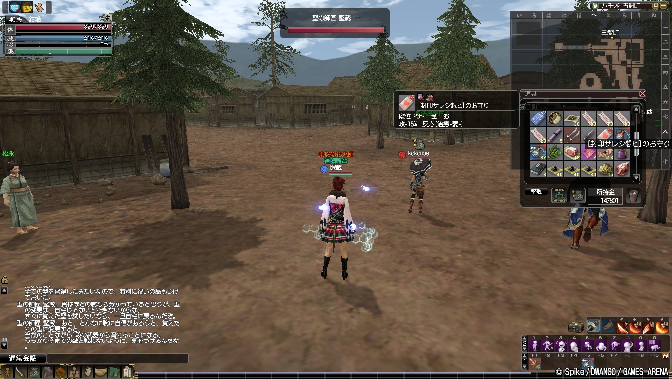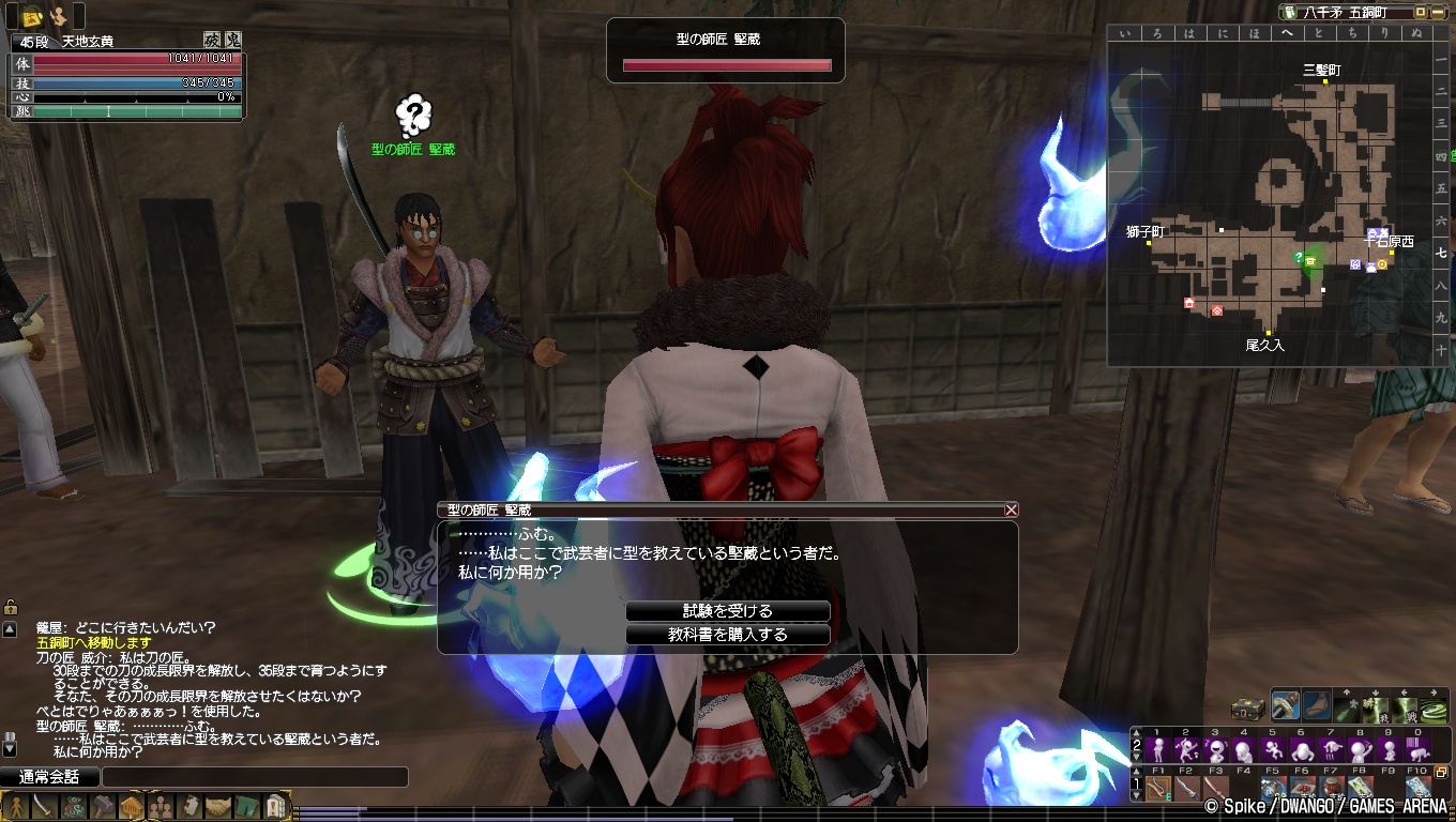 これまでは最大でも3つしか型を修得できなかったのですが,八千矛・五銅町へ7に新たな型の師匠が出現していました。