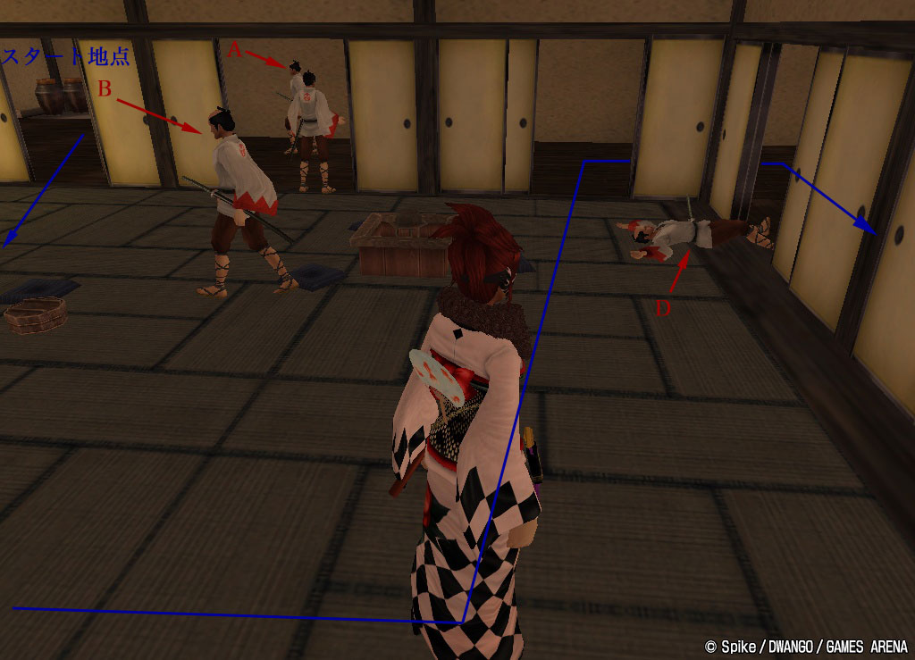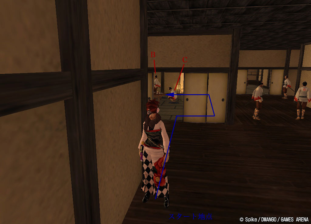 東進する兵士Aが真ん中のふすまから見えるタイミングですすんだら,