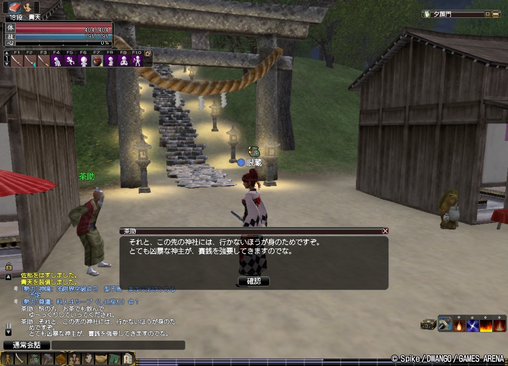 そんなこんなで,美鈴村での合戦後,その辺をうろうろしていたらパーティに誘ってもらい,物語「エゲレスの女」を進めることになりました。