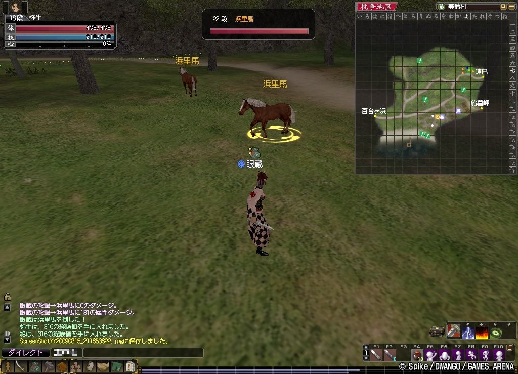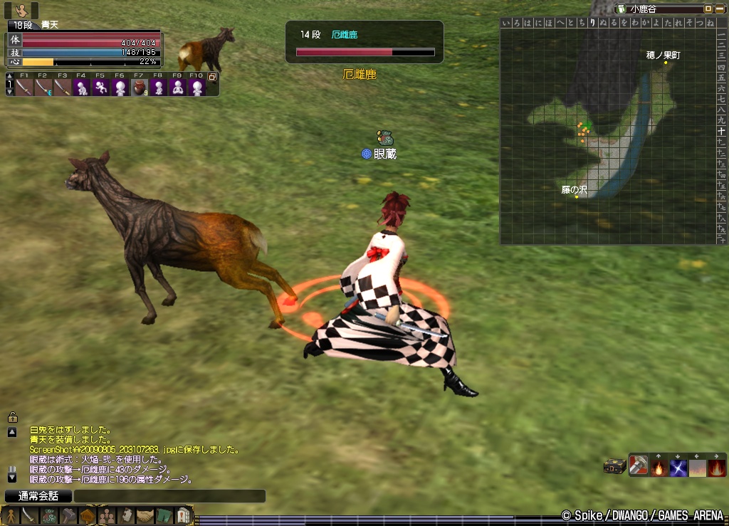 さて,小鹿谷に限らず,鹿は,単に横歩きをしているだけで,攻撃をかわすことができるので,「横歩きで攻撃をかわす」→「斬るける」(上段からの2連撃)または「念術」でもって,しばしば,しかし,ちびちびと,狩っています。